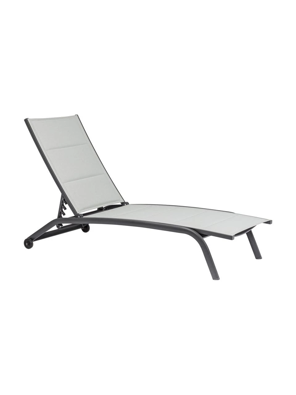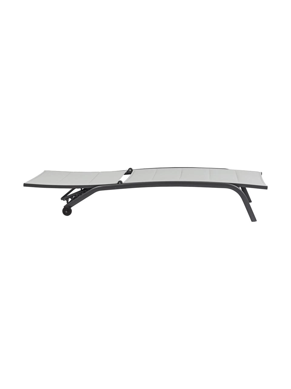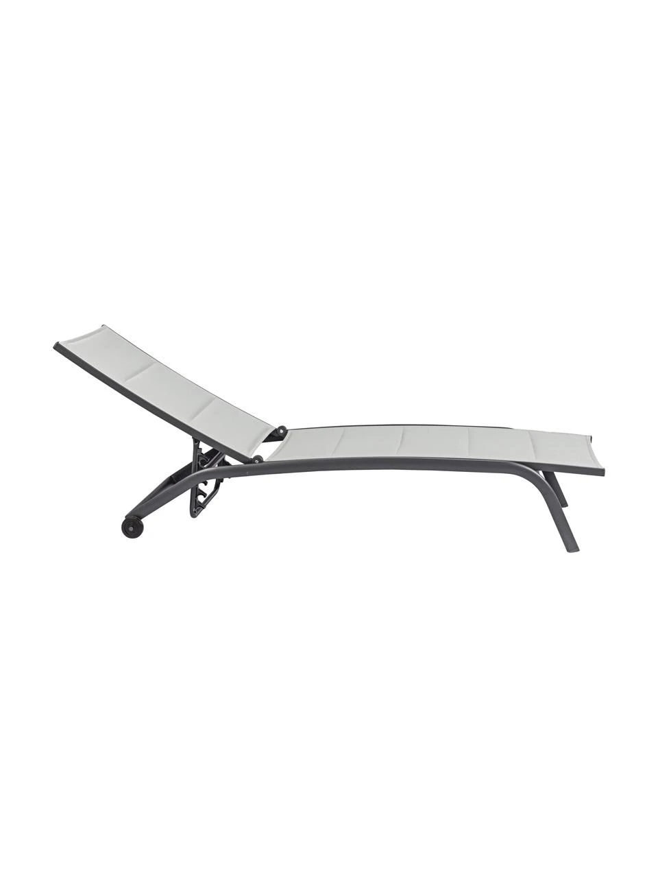 Bain de soleil à roulettes et dossier réglable en 5 étapes Toujours protéger de l’humidité et du froid lorsqu’il est utilisé à l’extérieur La chaise longue est livrée entièrement montée et peut être utilisée immédiatement après le déballage