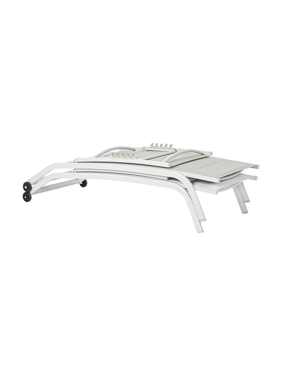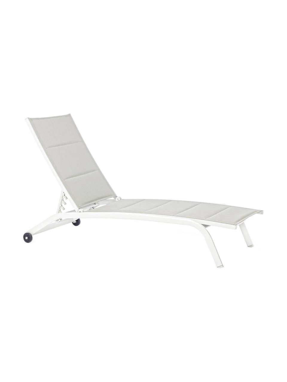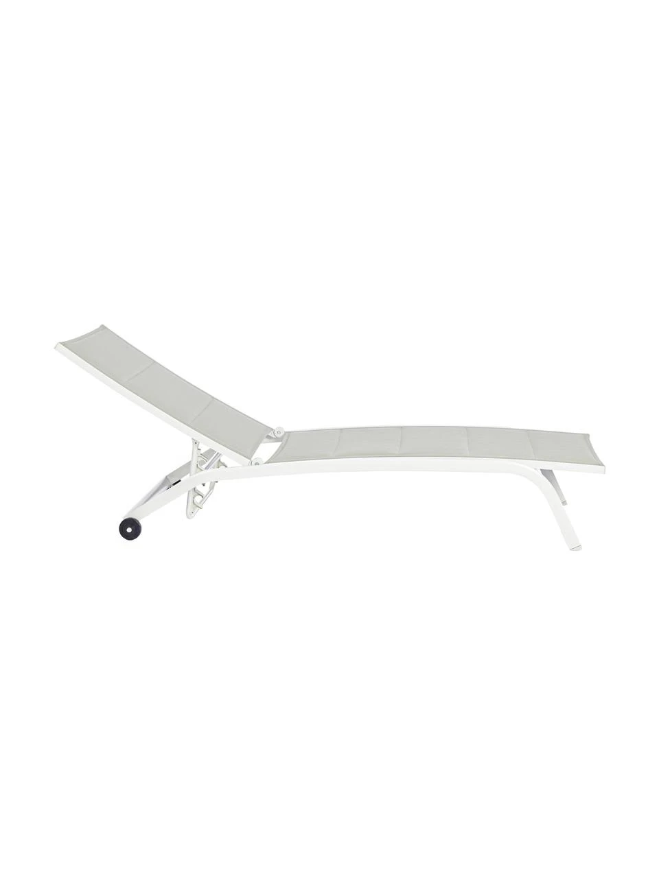 Bain de soleil à roulettes et dossier réglable en 5 étapes Toujours protéger de l’humidité et du froid lorsqu’il est utilisé à l’extérieur La chaise longue est livrée entièrement montée et peut être utilisée immédiatement après le déballage