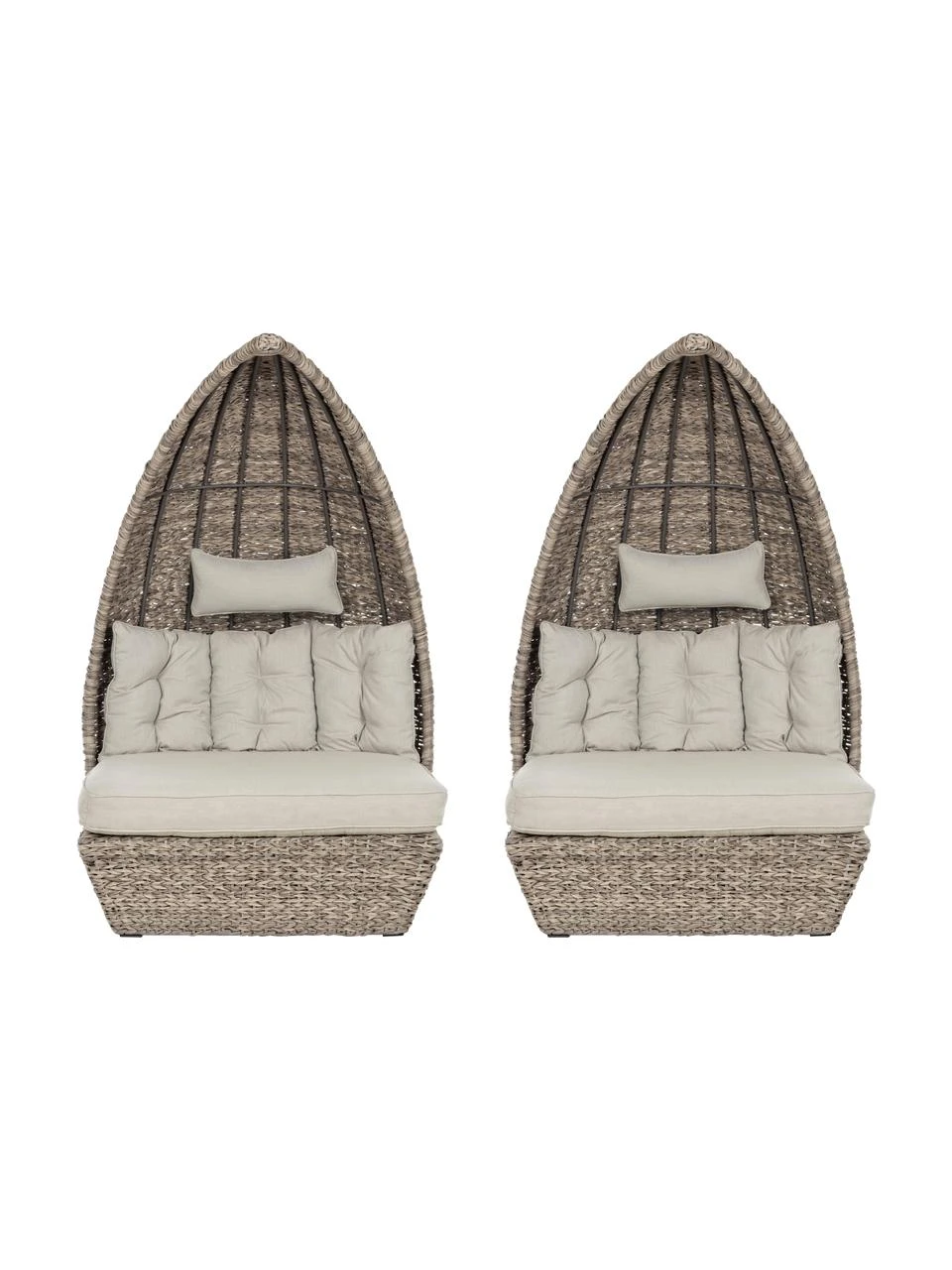 – 2 chaises longues de jardin avec 2 coussins d’assise, 2 coussins de dossier et 2 coussins de tête