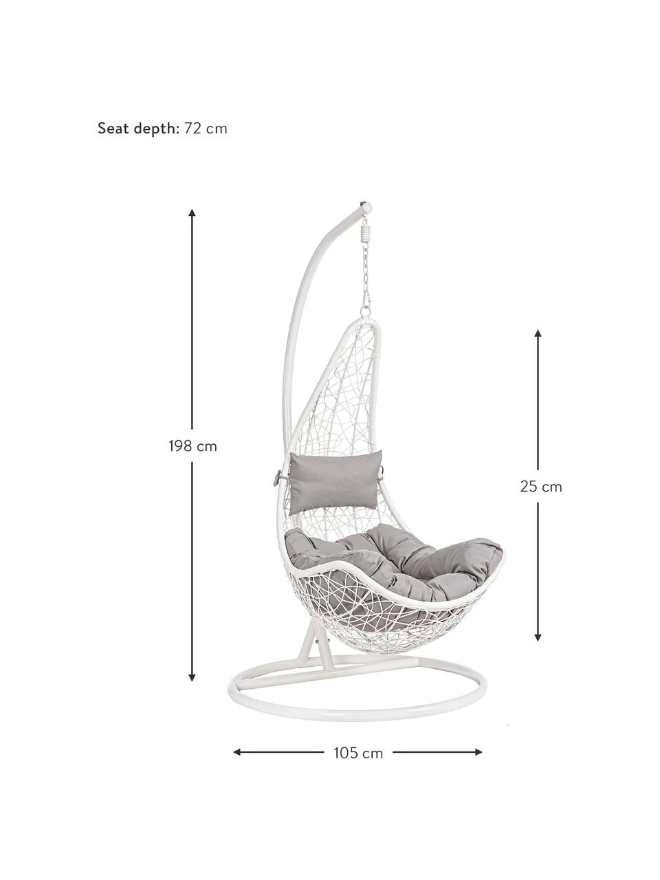 Fauteuil suspendu : larg. 80 cm, haut. 125 cm, prof. 72 cm