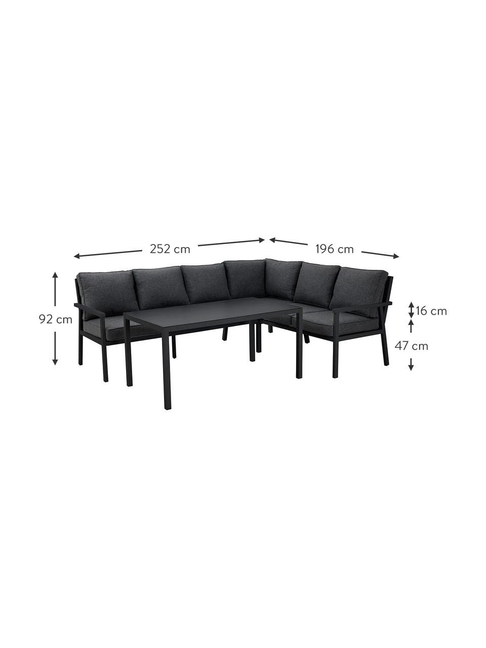 larg. 252 cm, haut. 92 cm, prof. 196 cm