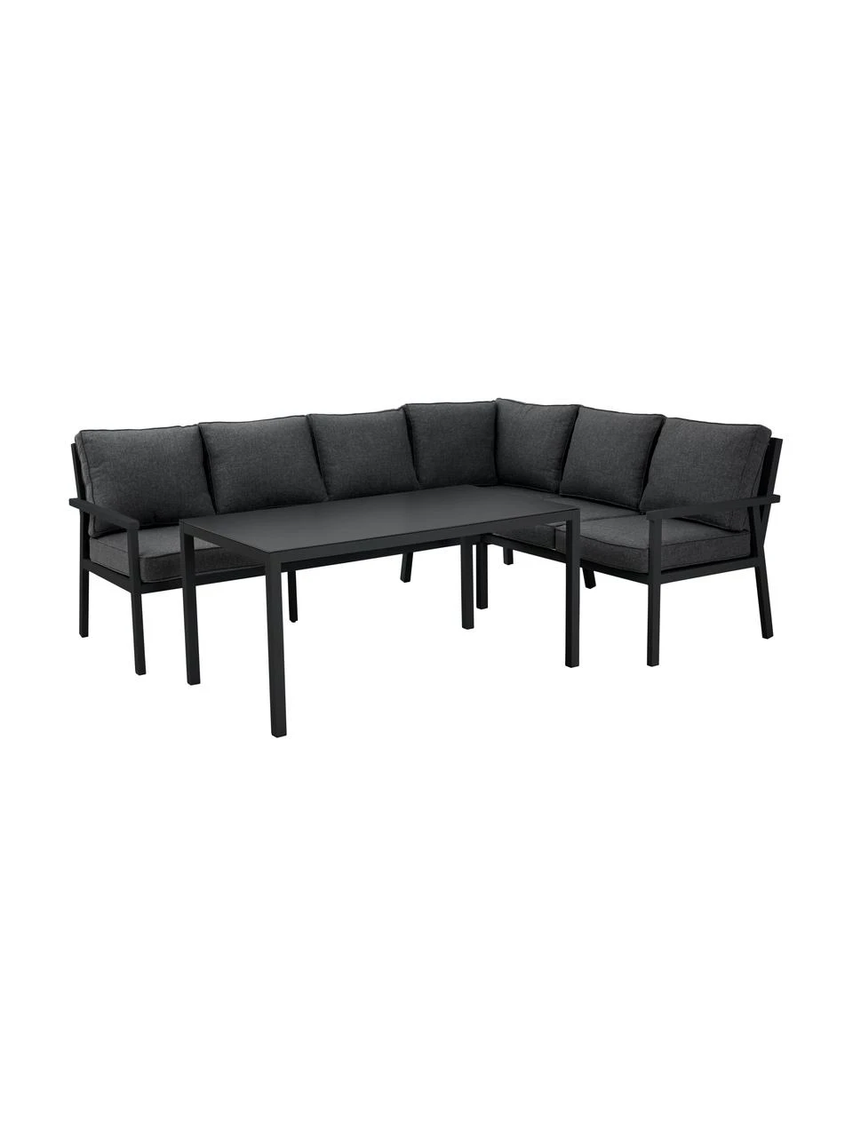 Salon de jardin comprenant un canapé d’angle (5 places) et une table