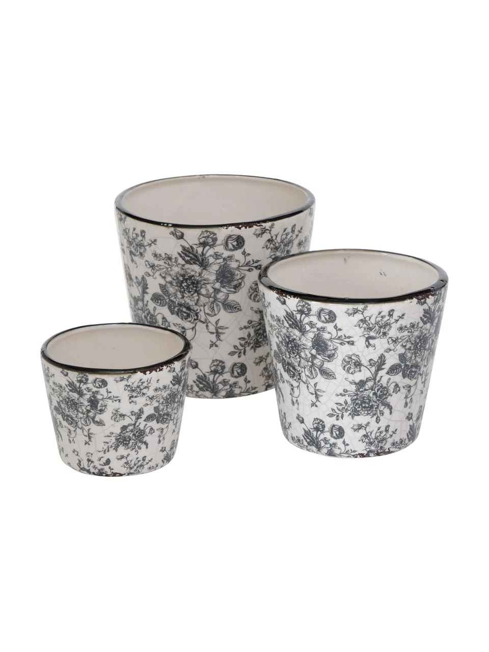 3 cache-pots faits à la main, de tailles différentes, avec des traces d’usure intentionnelles et une surface à aspect craquelé