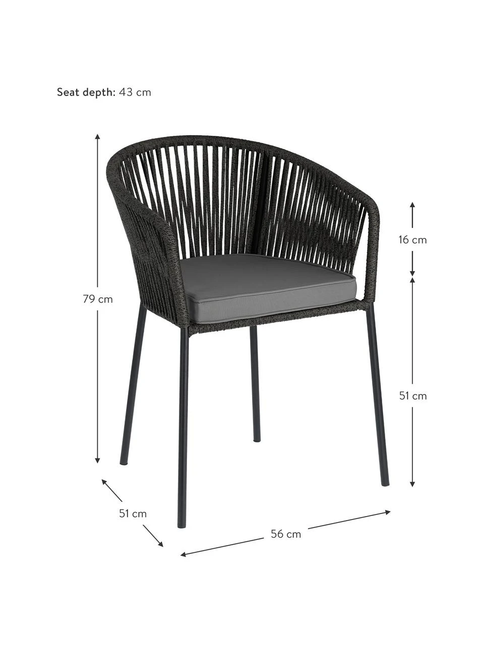Dimensions d’assise : larg. 42 cm, haut. 51 cm, prof. 43