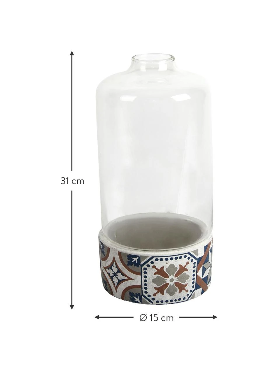 Posée sur un socle en béton avec des motifs de tuiles portugaises, ajoutant une touche méditerranéenne à l’intérieur