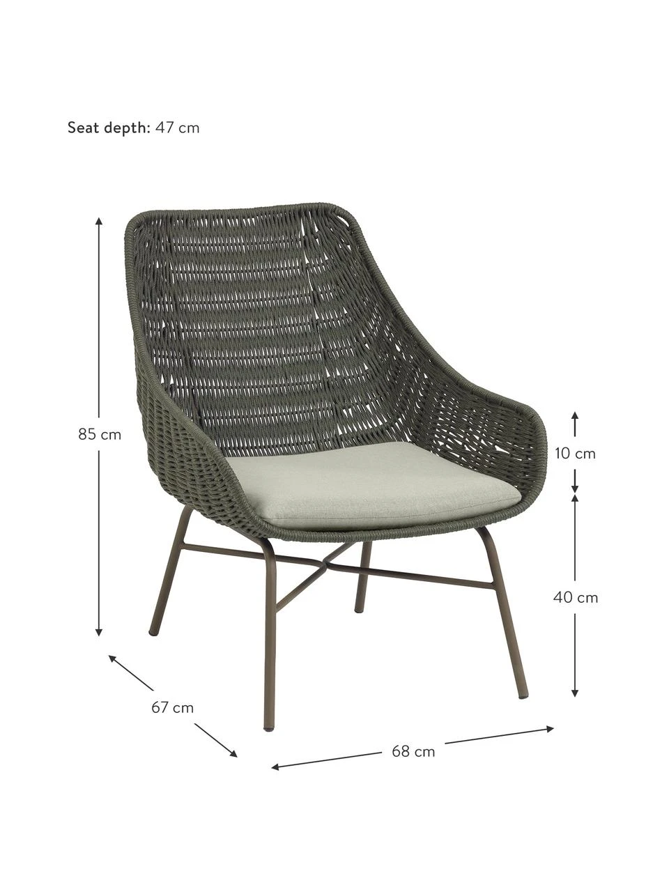 Dimensions de l’assise : larg. 52 cm, haut. 40 cm, prof. 47 cm
