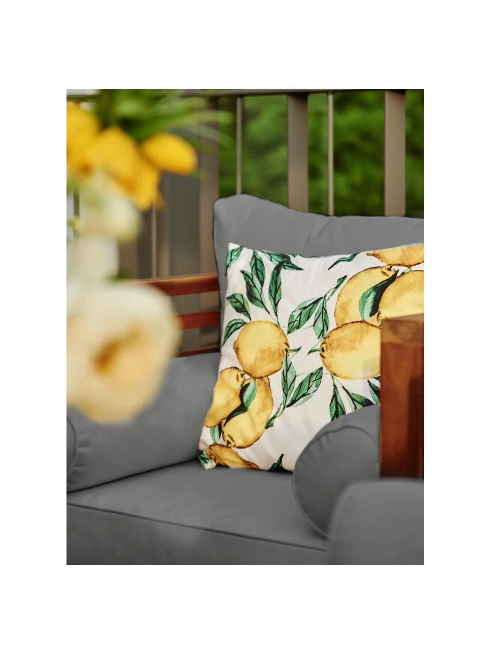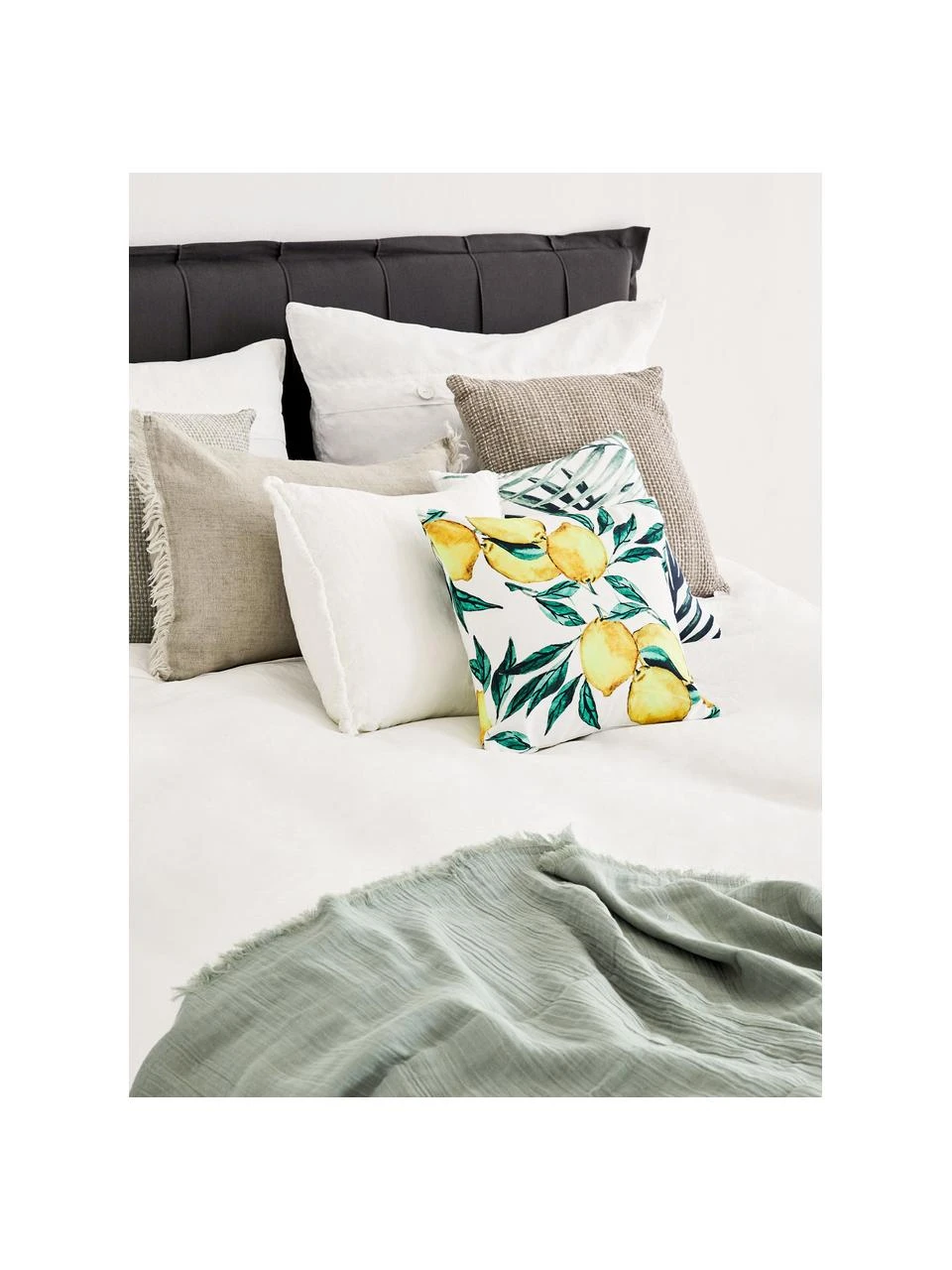 – Housse de coussin à endroit imprimé et envers de couleur unie