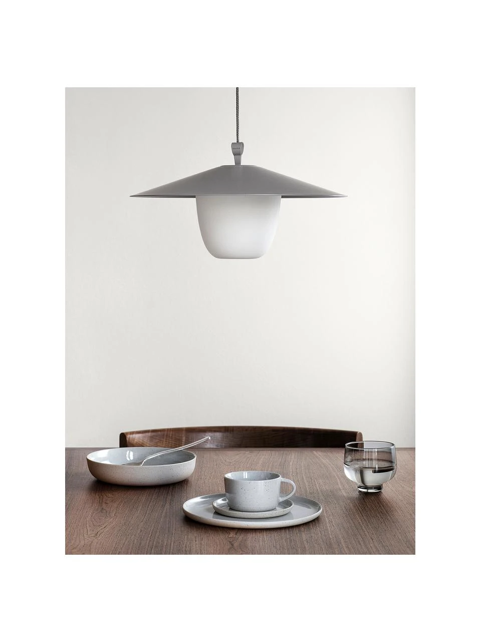 Grâce à la conception intelligente de cette lampe d’extérieur, le luminaire peut être utilisé aussi bien comme lampe suspendue que comme lampe à poser. Pour cela, il suffit de fixer soit le cordon suspendu à l’abat-jour, soit le pied de la lampe. En outre, la lampe est réglable en deux étapes grâce à une fonction tactile sur l’abat-jour et est donc polyvalente. Pour charger la lampe, il suffit de la placer sur la station de charge. Le cordon suspendu, la base de la lampe et la station de charge sont inclus