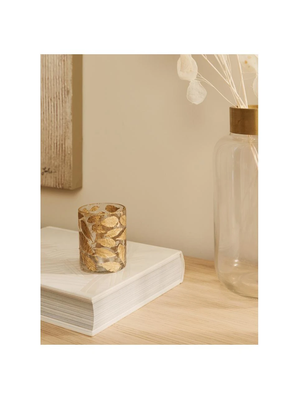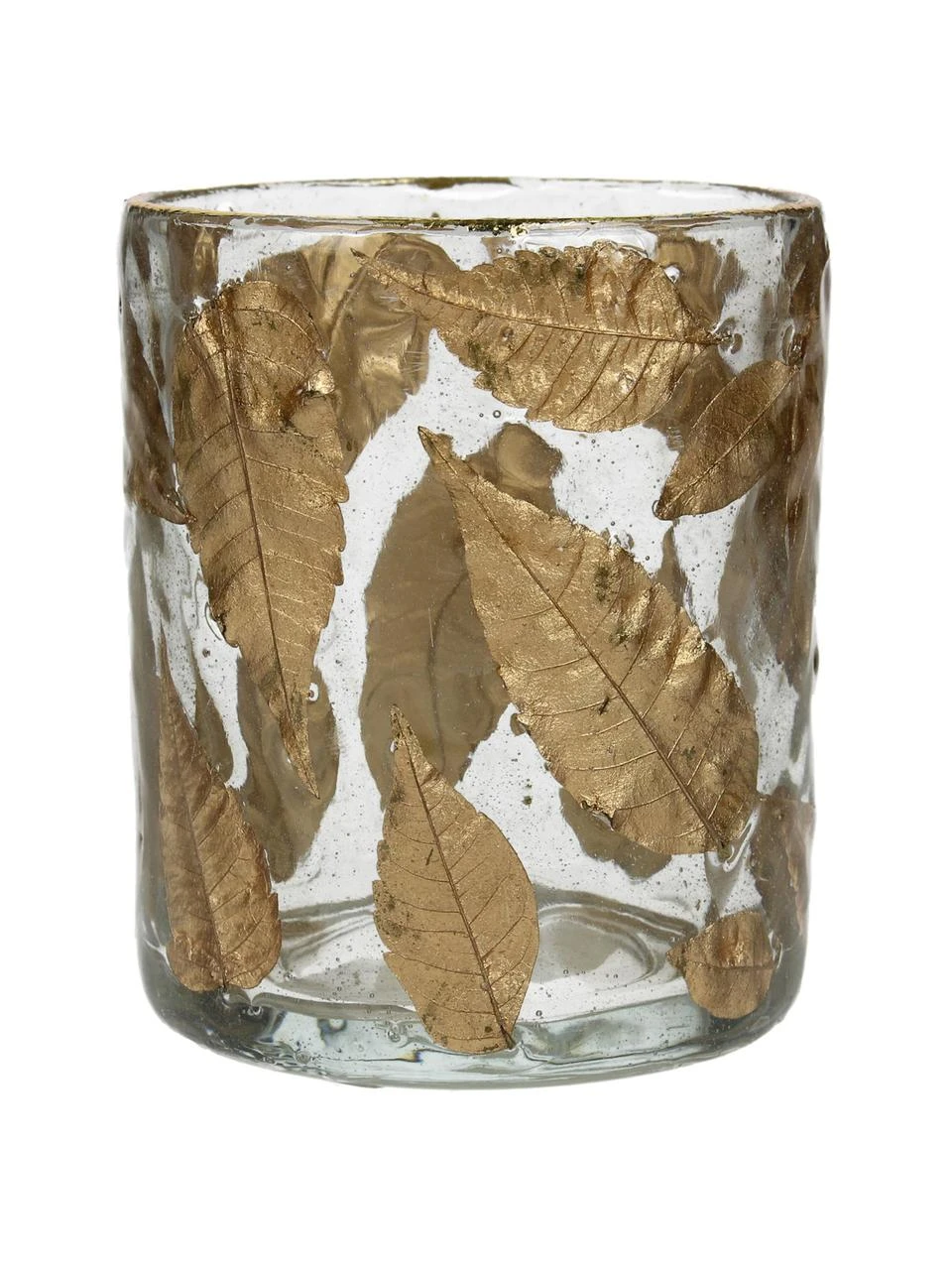 Photophore en verre à feuilles