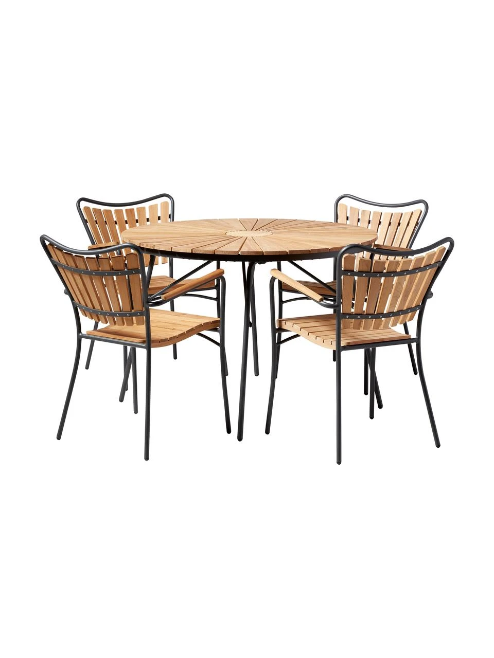 Salon de jardin à 5 éléments, composé d’une table pliante et de 4 chaises à accoudoirs