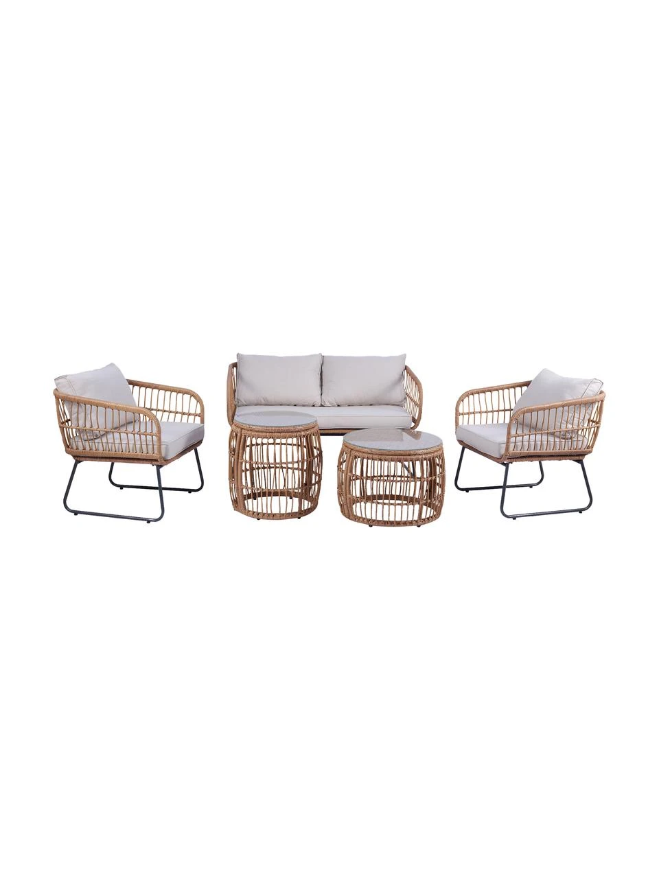 – Ensemble salon de jardin 5 élém. composé d’un canapé (2 places), de 2 fauteuils et de 2 tables d’appoint de différentes tailles