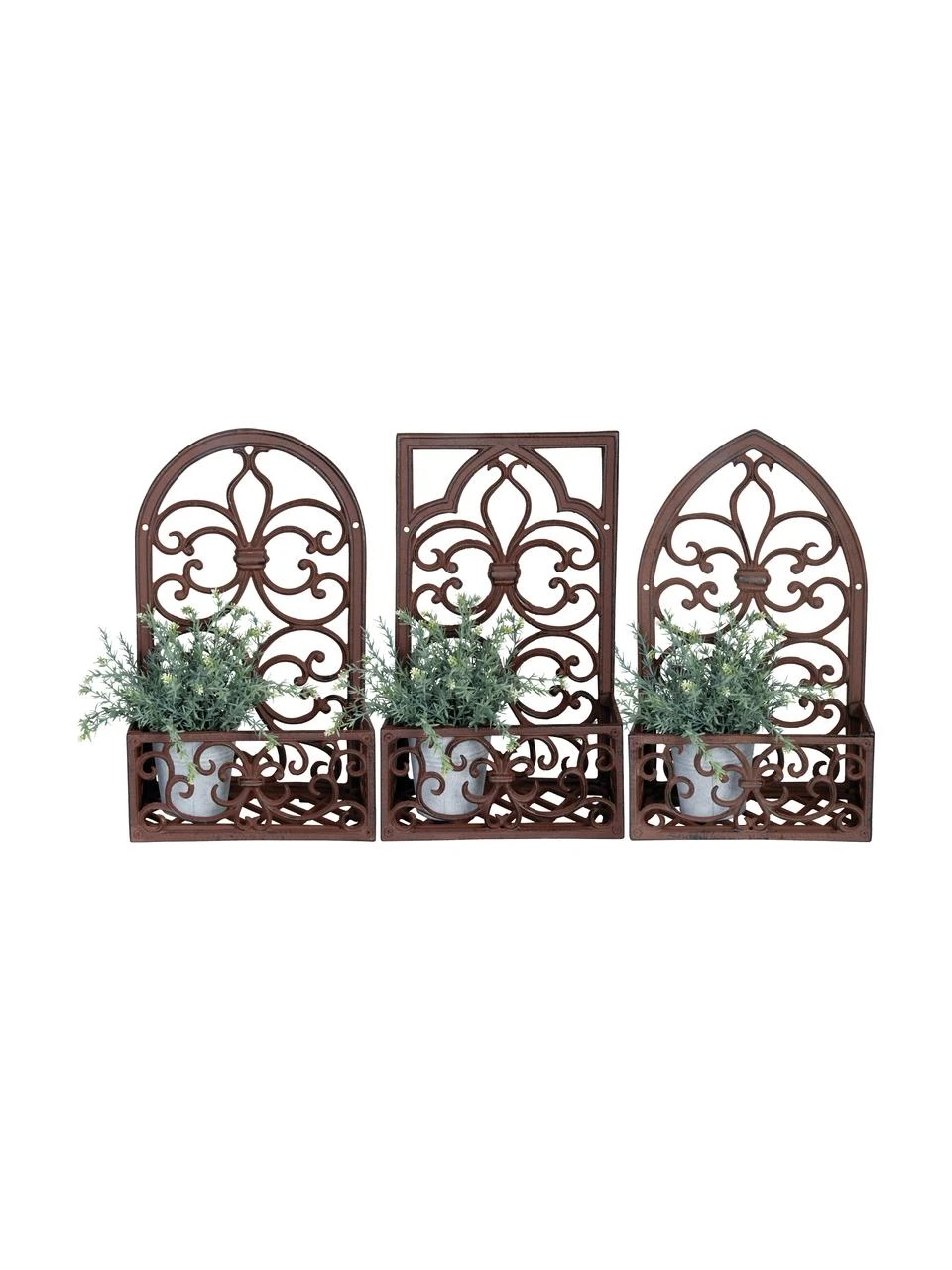 3 supports de cache-pot muraux de style victorien différent avec jardinière chacun