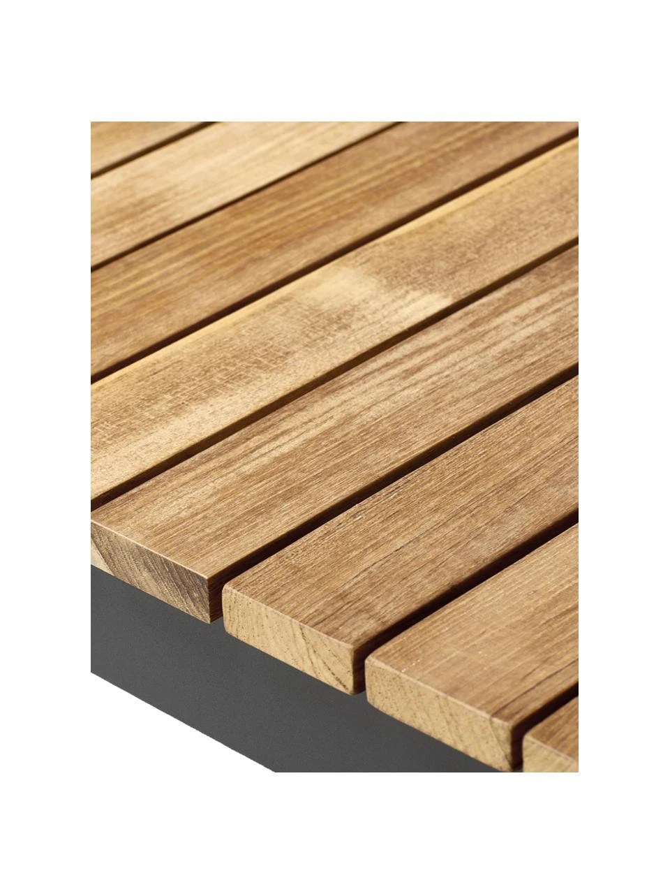 Le teck n’a pas besoin d’être imprégné, car il est très résistant aux intempéries en raison de sa teneur élevée en huiles naturelles. Étant un produit naturel, il obtient une patine gris argenté et de petites fissures peuvent apparaître au fil du temps à force d’être exposé à la pluie et à la lumière. Cela n’affecte pas sa longévité ni la qualité, mais peut être évité par un traitement régulier avec de l’huile de teck