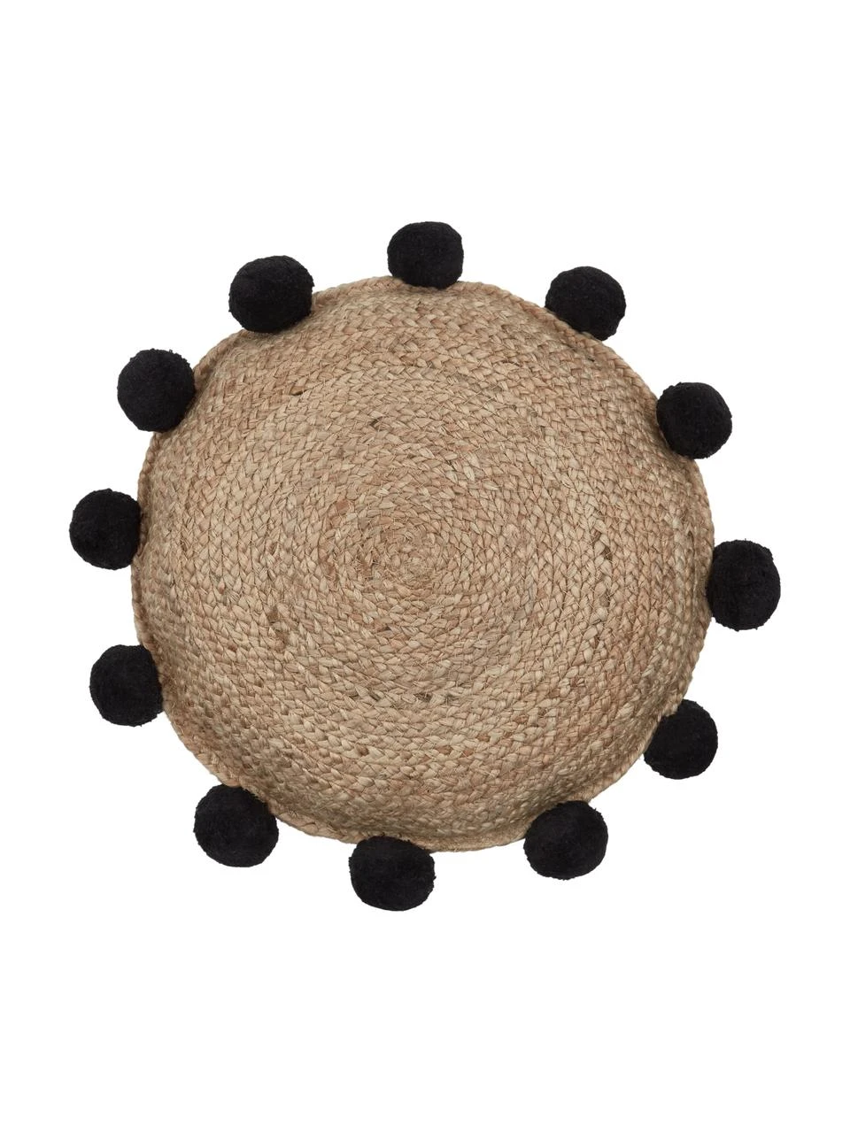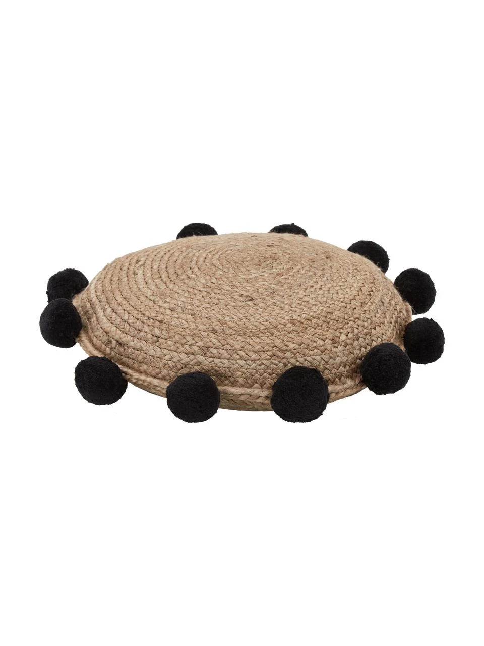 – Coussin en jute à pompons