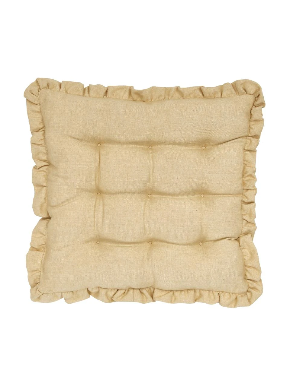 Grâce à ses couleurs douces et à ses volants, ce coussin apporte une ambiance chaleureuse de style campagnard dans chaque foyer