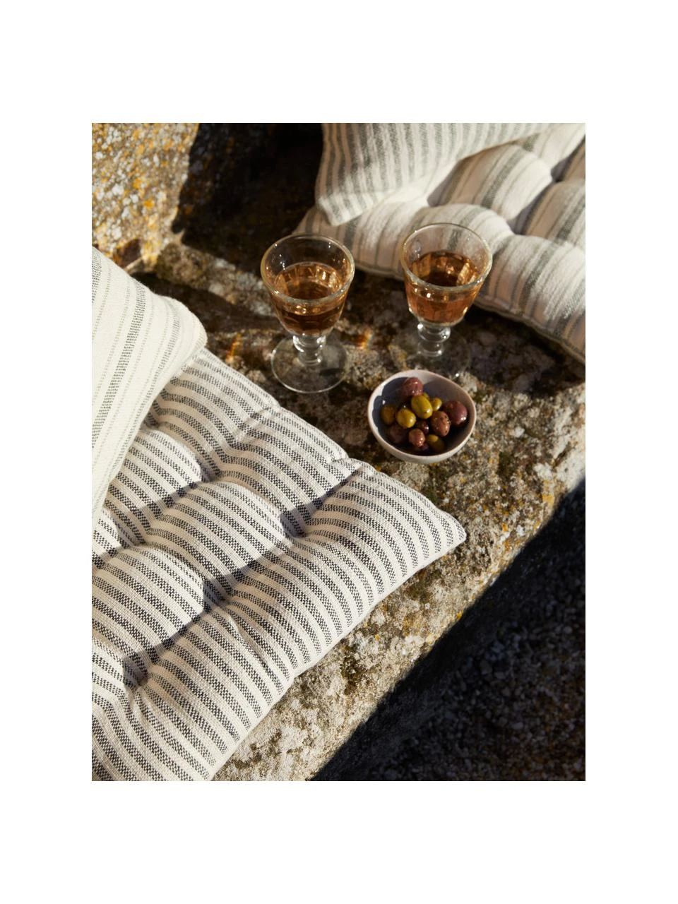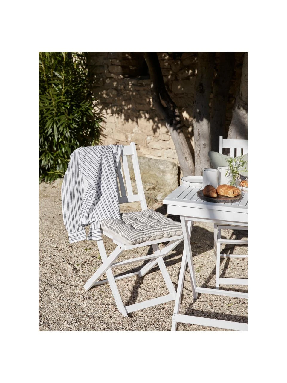 Grâce à ses rayures et à ses couleurs douces, le coussin de chaise apporte une ambiance chaleureuse de style campagnard dans chaque maison.