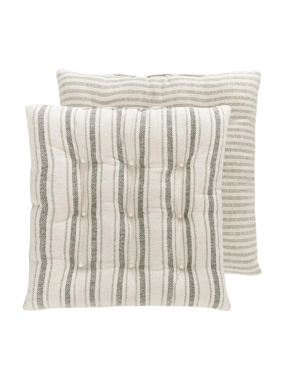 Grâce à ses rayures et à ses couleurs douces, le coussin de chaise apporte une ambiance chaleureuse de style campagnard dans chaque maison.