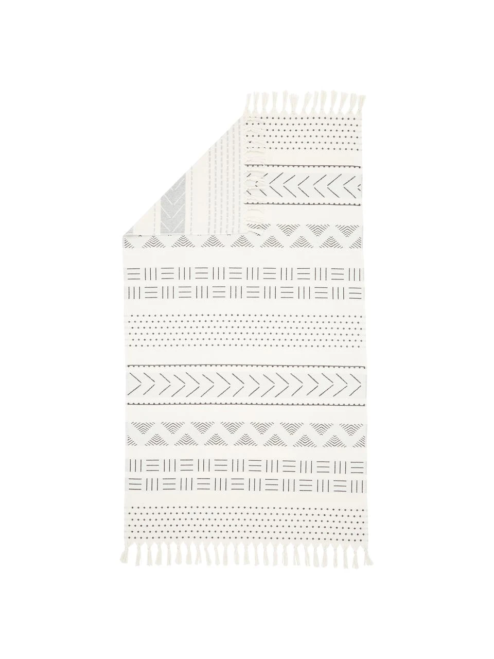 – Fouta pour hammam, avec motif bohème, extrémités frangées et différents endroit et envers
