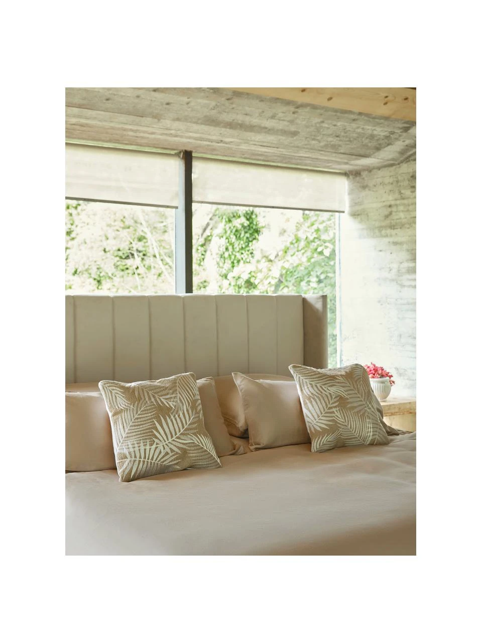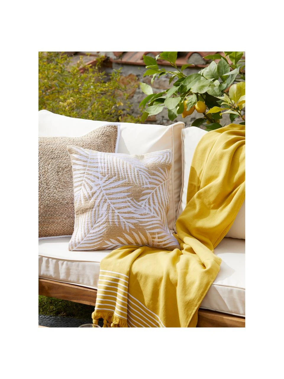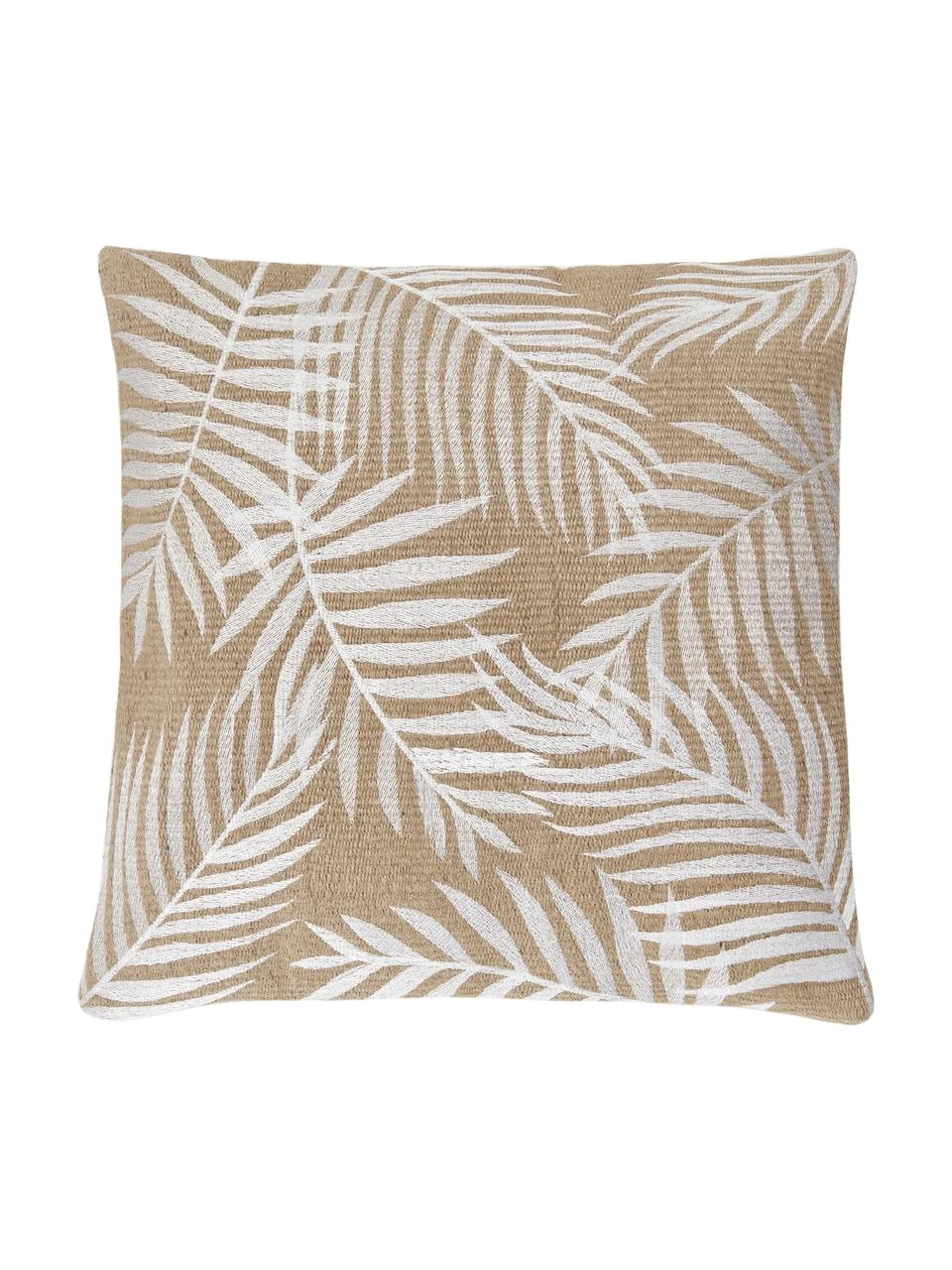 – Housse de coussin en toile de jute avec endroit et envers distincts et bordure passepoilée en coton