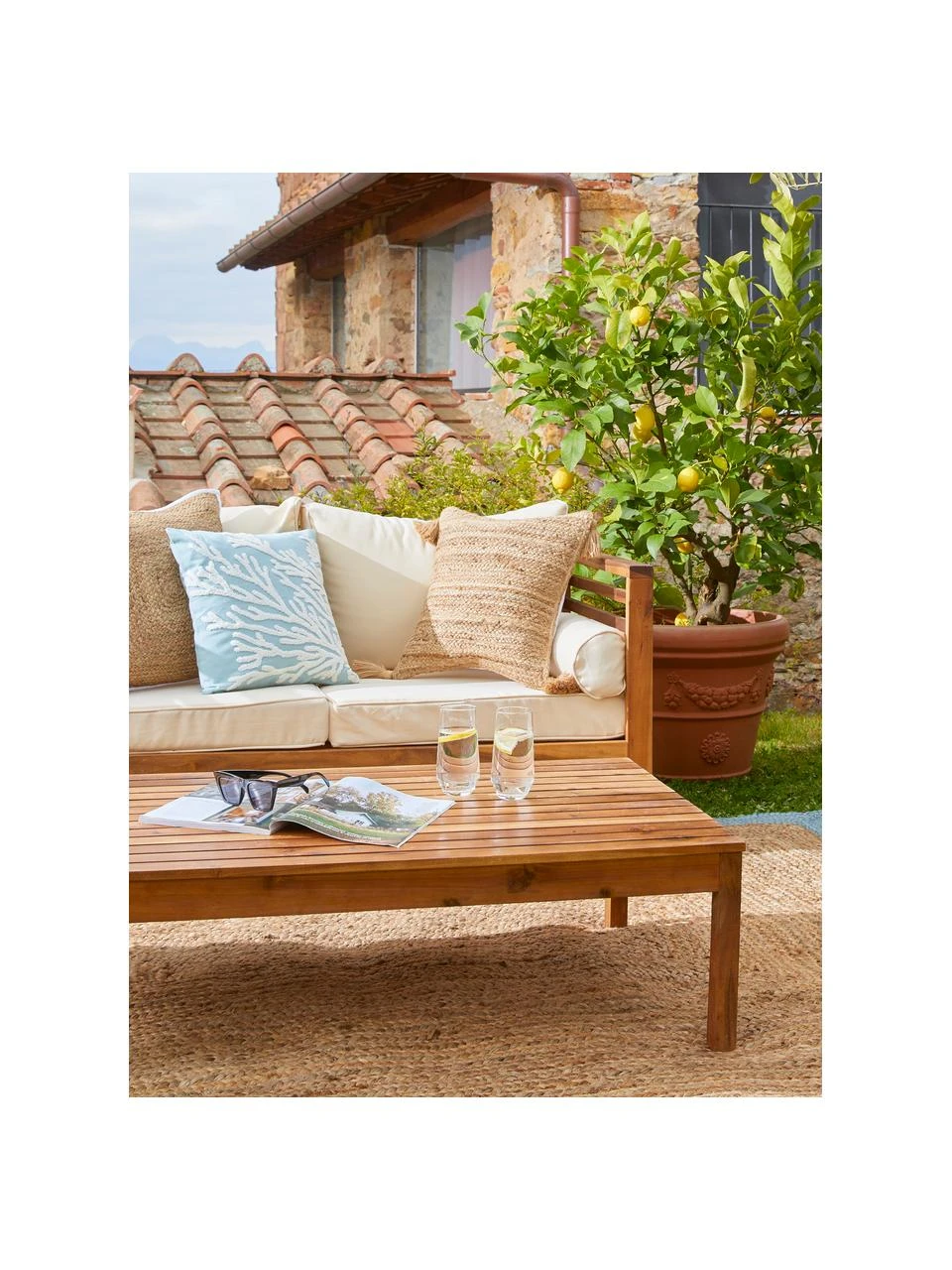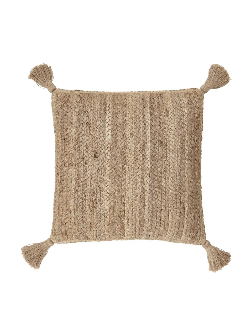 – Housse de coussin en jute à endroit et envers distincts, dotés de pompons