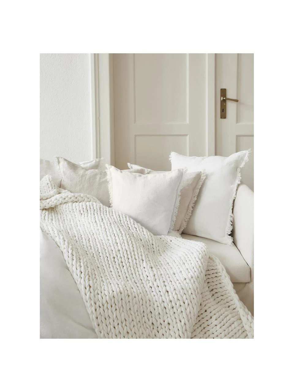 – Housse de coussin en lin à faces identiques et franges décoratives