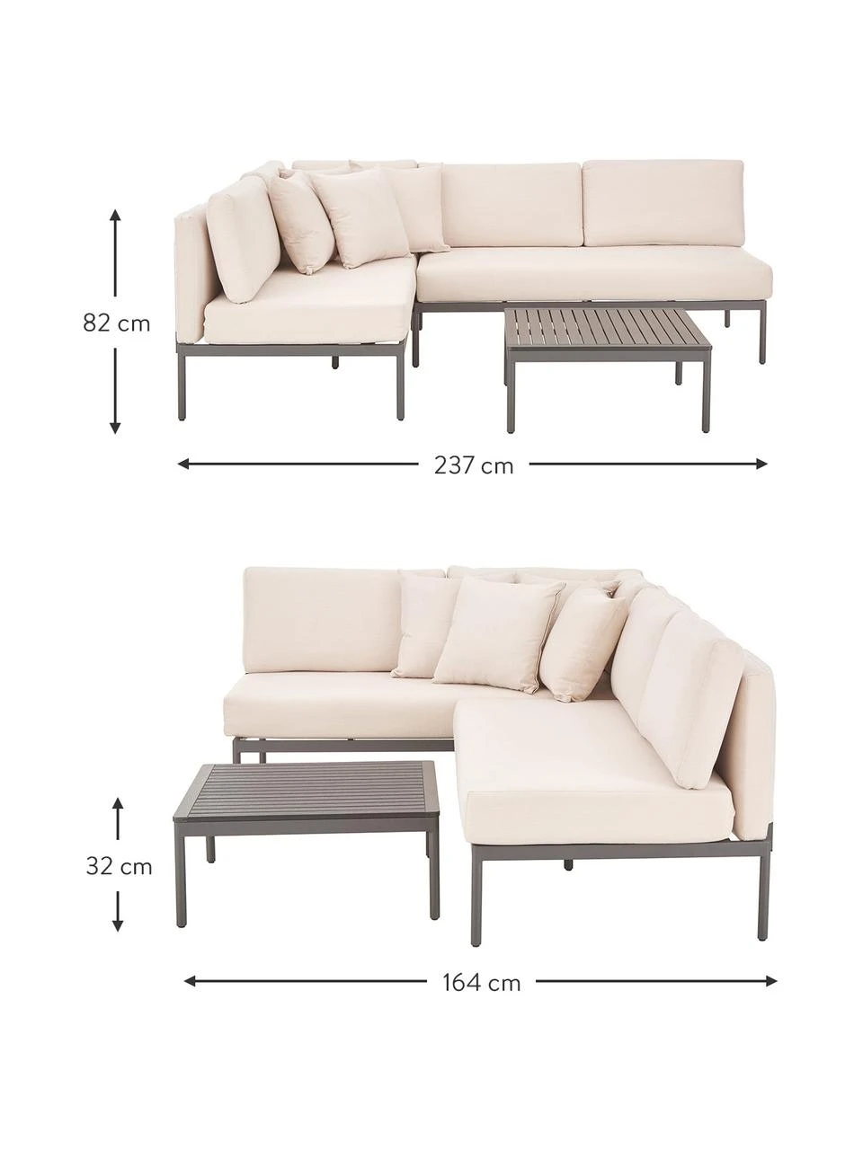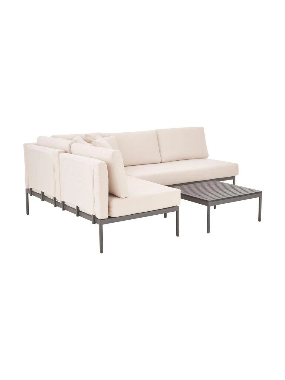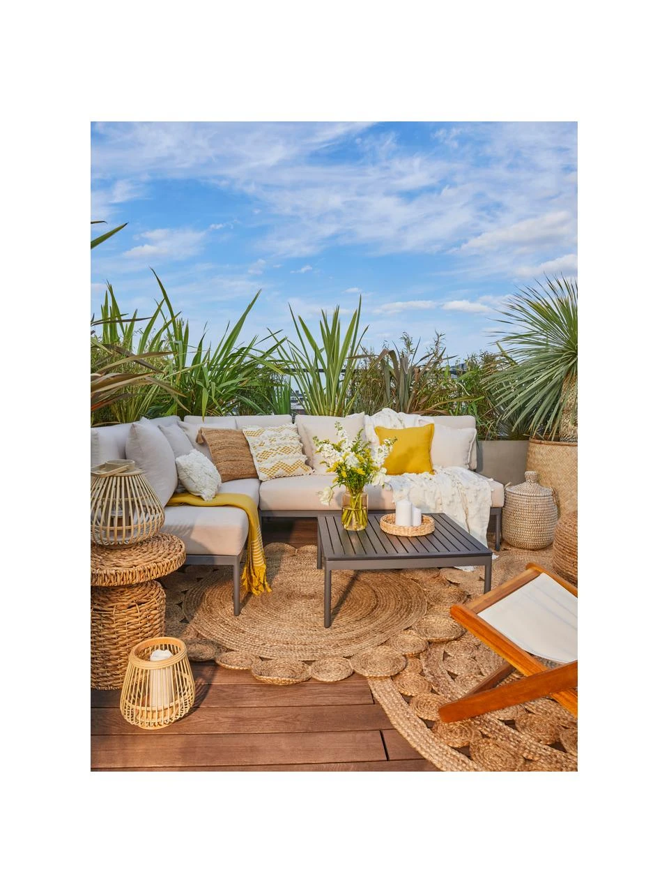 L’élégance moderne de l’extérieur rencontre le confort d’un coin salon ! Si vous aimez le minimalisme, vous allez adorer notre ensemble de salon de jardin Linden. Les couleurs discrètes sont faciles à combiner, les housses de coussin sont amovibles et la table assortie est comprise dans l’ensemble – que demander de plus ?